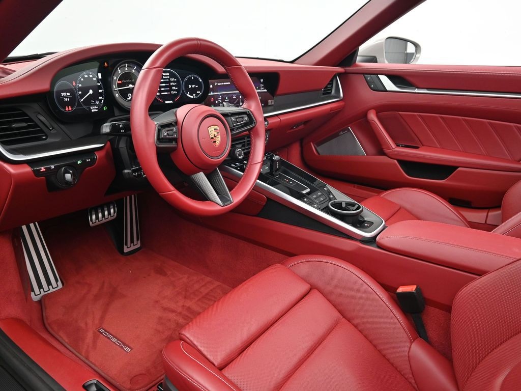 This Vehicle includes the following features and options: 911 Turbo SportDesign Package in High Gloss Black, 14-Way Power Sport Seats w/Memory Package, 18-Way Adaptive Sport Seats Plus w/Memory Package, Porsche Approved Certified Pre-Owned Certified, AWD, Adaptive Cruise Control, Ambient Lighting, Burmester High-End Surround Sound System, Exclusive Design Taillights, Front Axle Lift System, Heated GT Sport Steering Wheel w/Carbon Fiber, Illuminated Door-Sill Guards in Matte Carbon Fiber, Ionizer, LED-Matrix Design Headlights in Black w/PDLS+, Pedals & Footrest in Aluminum, Porsche Design Subsecond Clock, Power Steering Plus, Sport Exhaust System, Surround View, Under Door Puddle Light Projectors, Ventilated Front Seats, Wheels Painted in High Gloss Black, Wheels: 20" Fr/21" Rr 911 Turbo Exclusive Design, 12 Speakers, 4-Wheel Disc Brakes, ABS brakes, Adaptive suspension, Air Conditioning, Alloy wheels, Auto High-beam Headlights, Auto-dimming door mirrors, Auto-dimming Rear-View mirror, Automatic temperature control, Brake assist, Bumpers: body-color, Ceramic disc brakes: front and rear, Convertible roof lining, Convertible roof wind blocker, Delay-off headlights, Driver door bin, Driver vanity mirror, Dual front impact airbags, Dual front side impact airbags, Electronic Stability Control, Exterior Parking Camera Rear, Four wheel independent suspension, Front anti-roll bar, Front Bucket Seats, Front Center Armrest, Front dual zone A/C, Front reading lights, Fully automatic headlights, Garage door transmitter: HomeLink, Glass rear window, Heated door mirrors, Heated front seats, Illuminated entry, Integrated roll-over protection, Leather Seat Trim w/Leather Interior, Leather steering wheel, Low tire pressure warning, Memory seat, Navigation system: Porsche Communication Management (PCM), Occupant sensing airbag, Outside temperature display, Overhead airbag, Overhead console, Passenger door bin, Passenger vanity mirror, Porsche Communication Management, Power convertible roof, Power door mirrors, Power driver seat, Power passenger seat, Power steering, Power windows, Radio data system, Rain sensing wipers, Rear anti-roll bar, Rear fog lights, Rear window defroster, Remote keyless entry, Security system, Speed control, Split folding rear seat, Spoiler, Sport steering wheel, Steering wheel memory, Steering wheel mounted audio controls, Tachometer, Telescoping steering wheel, Tilt steering wheel, Traction control, Trip computer, Variably intermittent wipers, Wheels: 20" Front/21" Rear 911 Turbo, and Wheels: 20" Front/21" Rear 911 Turbo S.