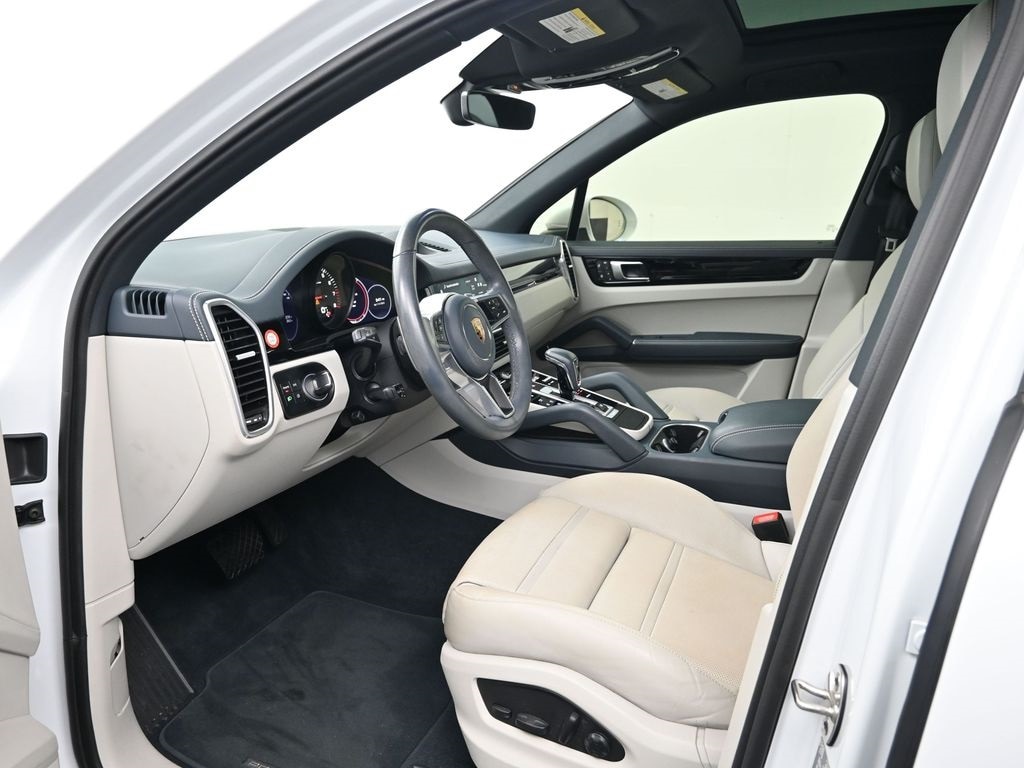 This Vehicle includes the following features and options: Premium Package (14-Way Power Seats w/Comfort Memory, Ambient Lighting, Automatically Dimming Mirrors, BOSE Surround Sound System, Comfort Access, Heated Front Seats, Lane Change Assist (LCA), LED Headlights w/PDLS, Panoramic Roof System, and Power Steering Plus), Porsche Approved Certified Pre-Owned Certified, Graphite Blue/Chalk w/Leather Seat Trim w/Two-Tone Leather Interior, ABS brakes, Adaptive Cruise Control, Alloy wheels, Electronic Stability Control, Front dual zone A/C, Front Seat Ventilation, Heated door mirrors, Heated Steering Wheel, Illuminated entry, Low tire pressure warning, Navigation System, Porsche Communication Management, Power Liftgate, Remote keyless entry, Traction control, Wheels: 20" Cayenne Design, 10 Speakers, 4-Wheel Disc Brakes, 8-Way Power Seats, Adaptive suspension, Air Conditioning, AM/FM radio: SiriusXM, Apple CarPlay, Automatic temperature control, Axle Ratio: 3.48, Brake assist, Bumpers: body-color, Delay-off headlights, Driver door bin, Driver vanity mirror, Dual front impact airbags, Dual front side impact airbags, Exterior Parking Camera Rear, Four wheel independent suspension, Front anti-roll bar, Front Bucket Seats, Front Center Armrest, Front reading lights, Fully automatic headlights, Garage door transmitter: HomeLink, Knee airbag, Leather Shift Knob, Occupant sensing airbag, Outside temperature display, Overhead airbag, Overhead console, Panic alarm, Partial Leather Seat Trim, Passenger door bin, Passenger vanity mirror, Power door mirrors, Power driver seat, Power passenger seat, Power steering, Power windows, Radio data system, Rain sensing wipers, Rear anti-roll bar, Rear fog lights, Rear reading lights, Rear seat center armrest, Rear side impact airbag, Rear window defroster, Rear window wiper, Security system, Speed control, Split folding rear seat, Spoiler, Steering wheel mounted audio controls, Tachometer, Telescoping steering wheel, Tilt steering wheel, Trip computer, Turn signal indicator mirrors, Variably intermittent wipers, Voltmeter, and Wheels: 19" Cayenne.