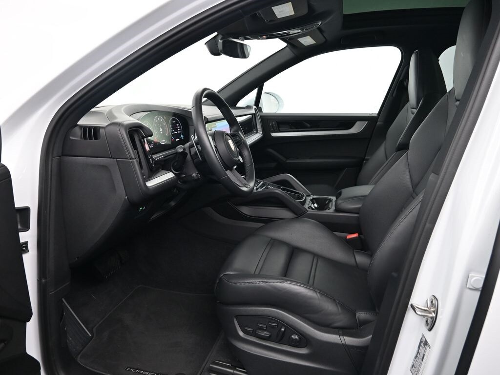 This Vehicle includes the following features and options: Premium Package Plus (14-Way Power Seats w/Comfort Memory, 4-Zone Climate Control, Adaptive Cruise Control w/Lane Keep Assist (LKA), BOSE Surround Sound System, Front Ventilated Seats, HD-Matrix Design LED Headlights, Panoramic Roof System, and Rear Heated Seats), Porsche Approved Certified Pre-Owned Certified, Black w/Leather Seat Trim w/Leather Interior, Air Quality System, Exclusive Design Fuel Cap, Head-Up Display, Heated GT Sport Steering Wheel in Leather, Power Sunblind for Rear Side Windows, Roof Rails in Aluminum Finish, Under Door Puddle Light Projectors, Wheels: 21" Cayenne Exclusive Design, 10 Speakers, 4-Wheel Disc Brakes, 8-Way Power Seats, ABS brakes, Adaptive suspension, Air Conditioning, Alloy wheels, AM/FM radio: SiriusXM w/360L, Apple CarPlay & Android Auto, Artificial Leather Seat Trim, Audio memory, Auto-dimming door mirrors, Auto-dimming Rear-View mirror, Automatic temperature control, Brake assist, Bumpers: body-color, Compass, Delay-off headlights, Driver door bin, Driver vanity mirror, Dual front impact airbags, Dual front side impact airbags, Electronic Stability Control, Exterior Parking Camera Rear, Four wheel independent suspension, Front anti-roll bar, Front Bucket Seats, Front Center Armrest, Front dual zone A/C, Front reading lights, Fully automatic headlights, Garage door transmitter: HomeLink, Heated door mirrors, Heated front seats, Heated steering wheel, HVAC memory, Illuminated entry, Knee airbag, Leather steering wheel, Low tire pressure warning, Memory seat, Navigation System, Occupant sensing airbag, Outside temperature display, Overhead airbag, Overhead console, Panic alarm, Passenger door bin, Passenger vanity mirror, Porsche Communication Management, Power door mirrors, Power driver seat, Power Liftgate, Power passenger seat, Power steering, Power windows, Radio data system, Rain sensing wipers, Rear anti-roll bar, Rear fog lights, Rear reading lights, Rear seat center armrest, Rear side impact airbag, Rear window defroster, Rear window wiper, Remote keyless entry, Security system, Speed control, Speed-sensing steering, Split folding rear seat, Spoiler, Steering wheel mounted audio controls, Tachometer, Telescoping steering wheel, Tilt steering wheel, Traction control, Trip computer, Turn signal indicator mirrors, Variably intermittent wipers, Voltmeter, and Wheels: 20" Cayenne Design.